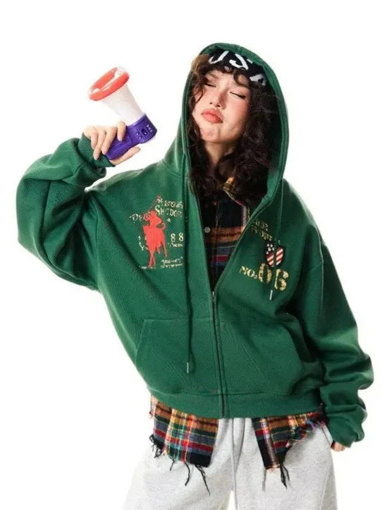 Fleece Zip-Up Drawstring Outerwear